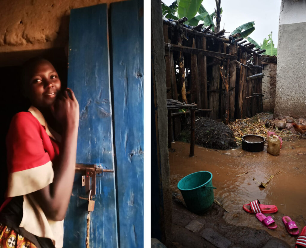 Sonntagnachmittag machen Jean Claude und ich einen Spaziergang durch die Felder und Berge ,als plötzlich eine starker Regen einsetzt. Nun beginnt hier die Regenzeit. In einer Lehmhütte finden wir Unterschlupf und warten eine Stunde mit einem jungen Mädchen Nadine bis der Regen aufhört. Sie haben immerhin eine Kuh, ein Schwein, zwei Ziegen und vier Hühner, das ist schon sehr viel für eine Familie in Ruanda.